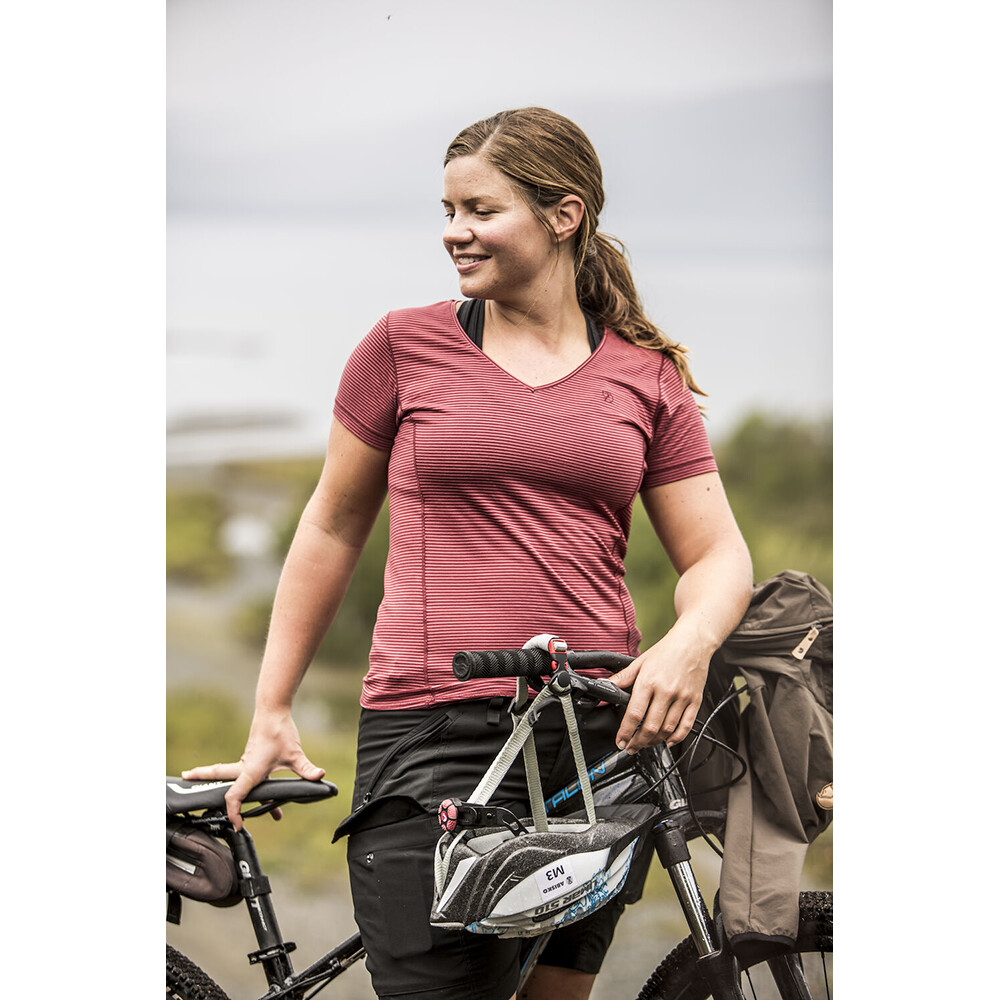 Tricou Fjällräven pentru femei realizat din materiale pur naturale și reciclate. Croiala mulată accentuează curbele feminine, materialul moale mângâie corpul, iar elementele funcționale oferă cea mai largă utilizare posibilă. Materialul natural Tencel® absoarbe cu 50% mai multă apă decât bumbacul. Un tricou care va fi popular pentru călătorii și activități în aer liber.