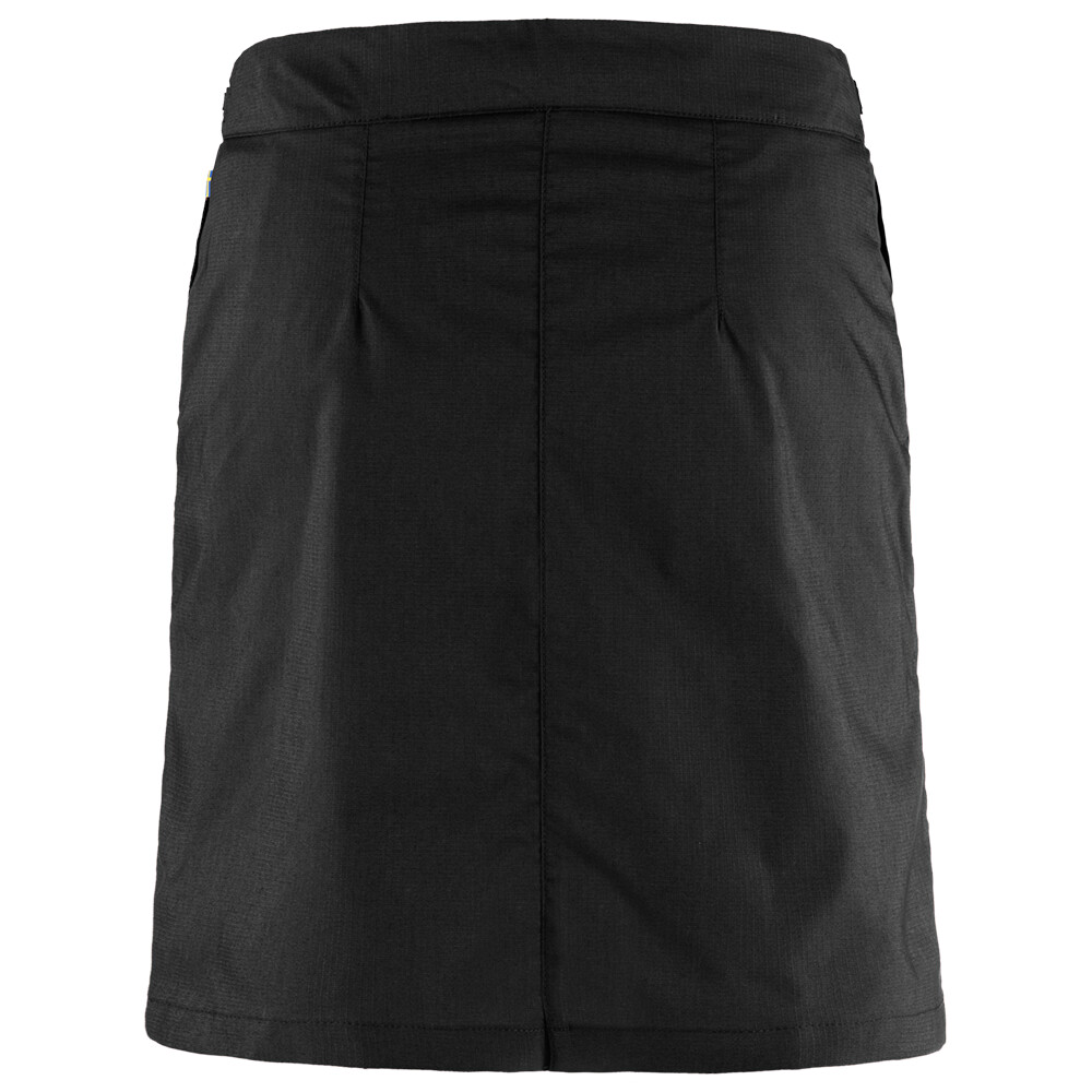 Fusta respirabilă pentru femei Fjällräven cu pantaloni scurți integrați este perfectă pentru drumeții în zilele toride de vară. Pantalonii scurți au o talie elastică și un buzunar pe picior.