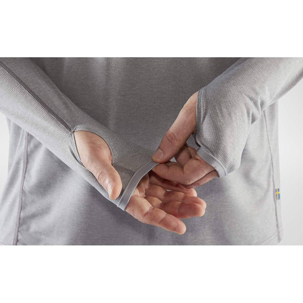 Tricoul este fabricat din material ușor, respirabil, cu uscare rapidă. Capota cu tiv întărit protejează capul și gâtul de razele soarelui. Mânecile rămân la locul lor datorită găurilor pentru degetul mare. Cusăturile joase ale umerilor previn iritațiile neplăcute atunci când sunt combinate cu un rucsac. Gulerele de subraț permit libertatea de mișcare. Ținuta ușor mai lejeră permite aerului să circule confortabil în jurul corpului.