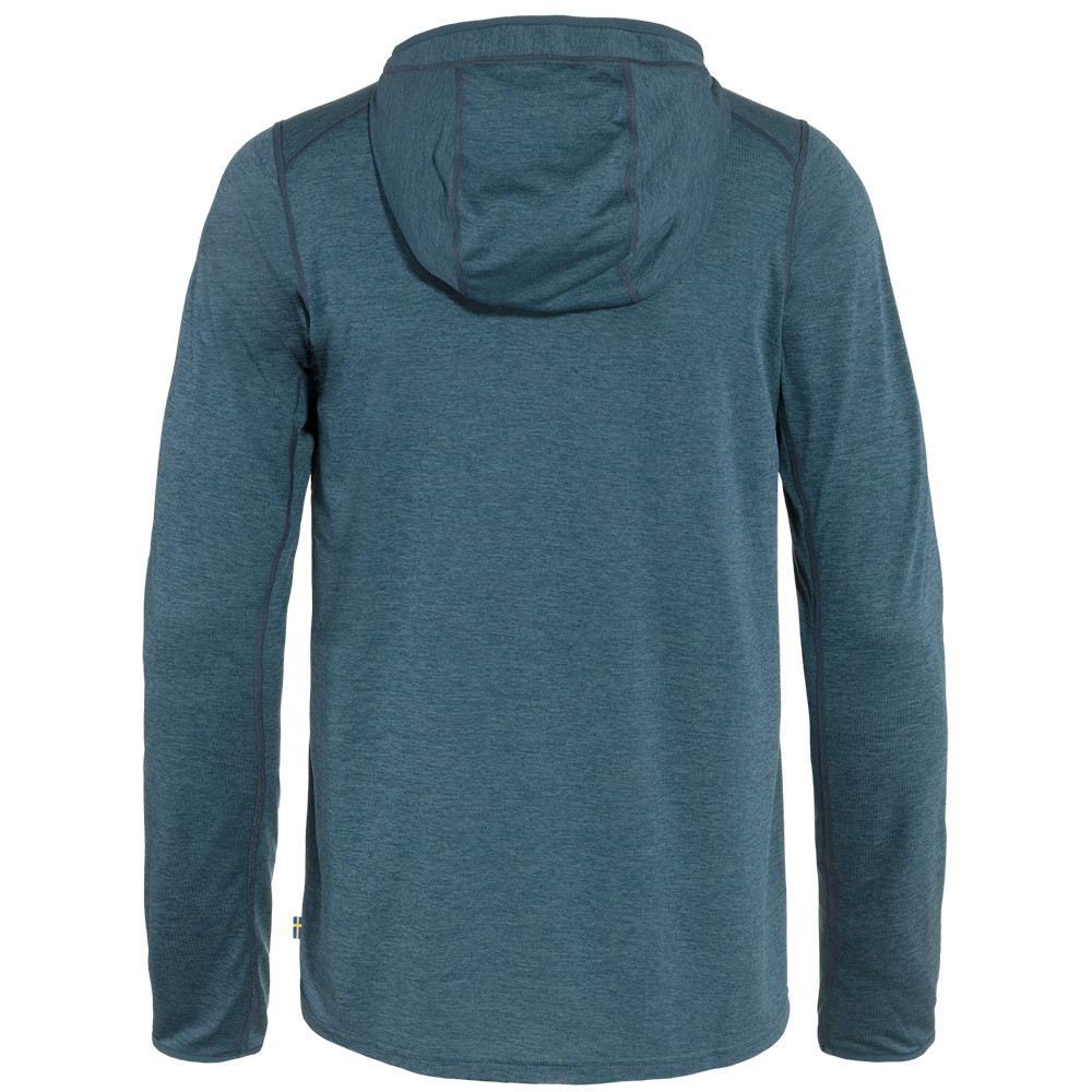 Tricoul Abisko Sun-hoodie pentru bărbați de la Fjällräven este conceput pentru trekking în condiții de căldură.