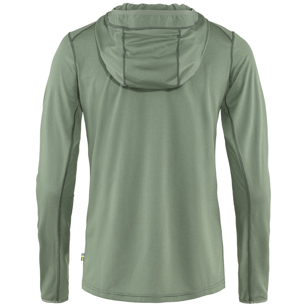 Cămașă ușoară și funcțională Abisko Sun-Hoodie de la Fjällräven pentru trekking și drumeții. Este fabricat din material reciclat. Se usucă rapid și evacuează activ umezeala de pe corp în timpul activităților dvs. Subrațurile au pliuri inserate pentru confort sporit, iar cusăturile de pe umeri sunt împinse înapoi pentru a evita iritațiile inconfortabile atunci când vă cărați rucsacul.