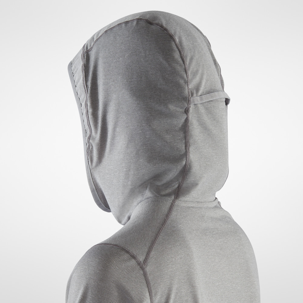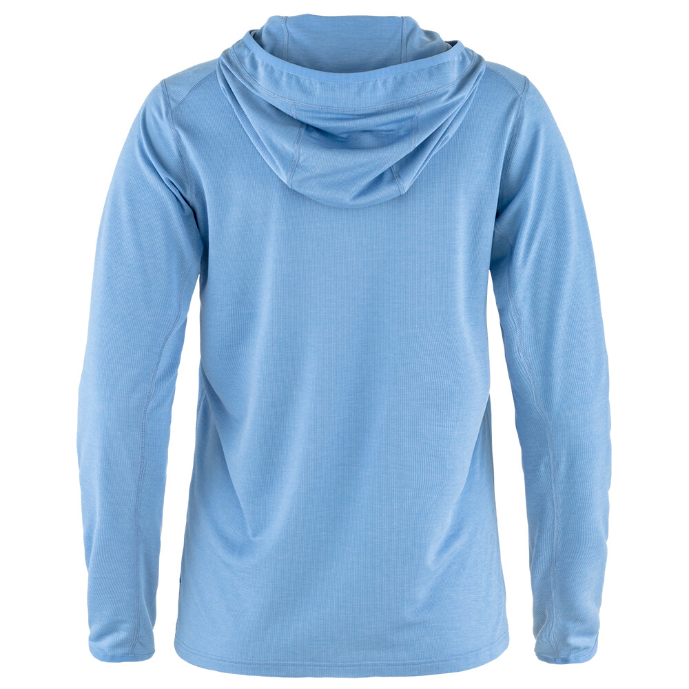 Cămașă ușoară și funcțională Abisko Sun-Hoodie de la Fjällräven pentru trekking și drumeții. Este fabricat din material reciclat. Se usucă rapid și evacuează activ umezeala de pe corp în timpul activităților dvs. Subrațurile au pliuri inserate pentru confort sporit, iar cusăturile de pe umeri sunt împinse înapoi pentru a evita iritațiile inconfortabile atunci când vă cărați rucsacul.