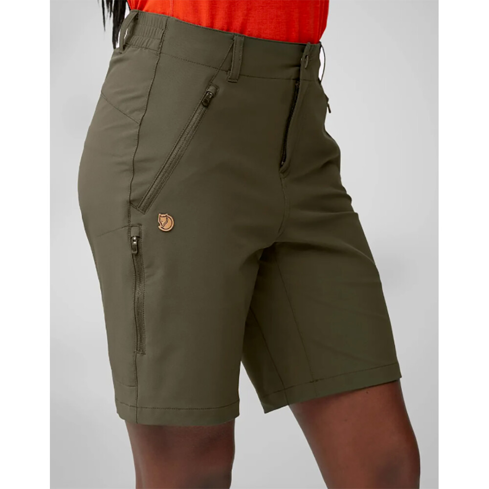 Pantaloni scurți funcționali pentru femei de la Fjällräven din material respirabil, ideali pentru activități în aer liber în zilele toride de vară. Croială mulată cu o talie mai înaltă care poate fi strânsă cu un cordon.