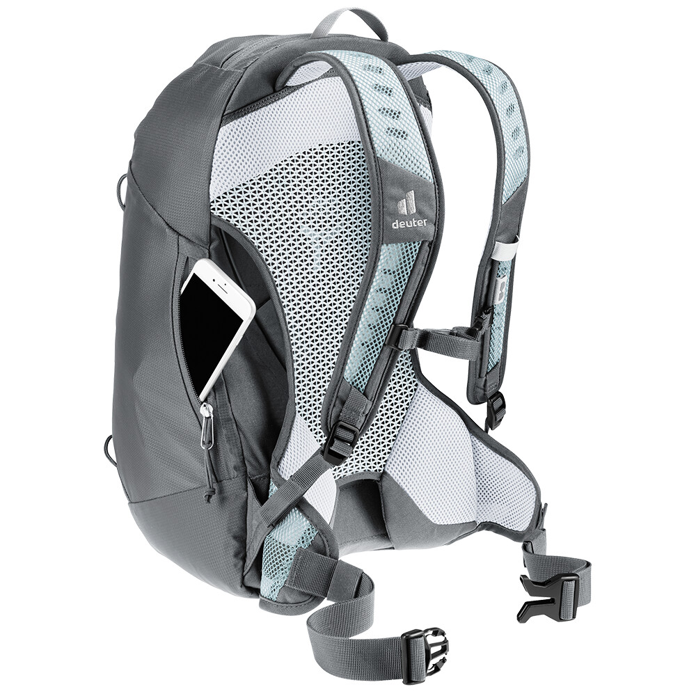 Compartimentul principal spațios al AC Lite 15 SL poate stoca cu ușurință toate lucrurile esențiale. În plus față de buzunarul central, acesta are un buzunar la îndemână pentru telefonul mobil sau alte obiecte de valoare și electronice. Pe părțile laterale există buzunare din plasă pentru sticlele de apă, în timp ce buclele vă permit să atașați o cască, bețe de trekking sau jachetă. Pe cureaua de umăr, veți găsi un atașament la îndemână pentru ochelari. Aceste detalii grijulii fac din AC Lite 15 SL partenerul ideal pentru drumeții de toate tipurile.