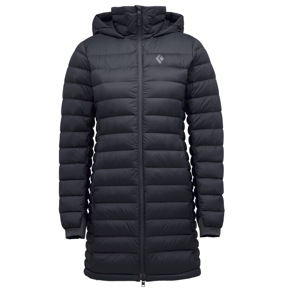 Parka cu glugă din puf pentru femei cu acces extins de la compania americană Black Diamond.
