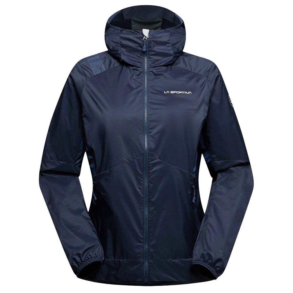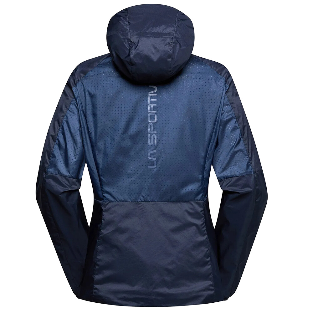 Jacheta de alergare pentru femei de la La Sportiva vă va proteja pe vreme rea datorită materialului său rezistent la vânt și la apă. Materialul asigură, de asemenea, o respirabilitate ridicată.