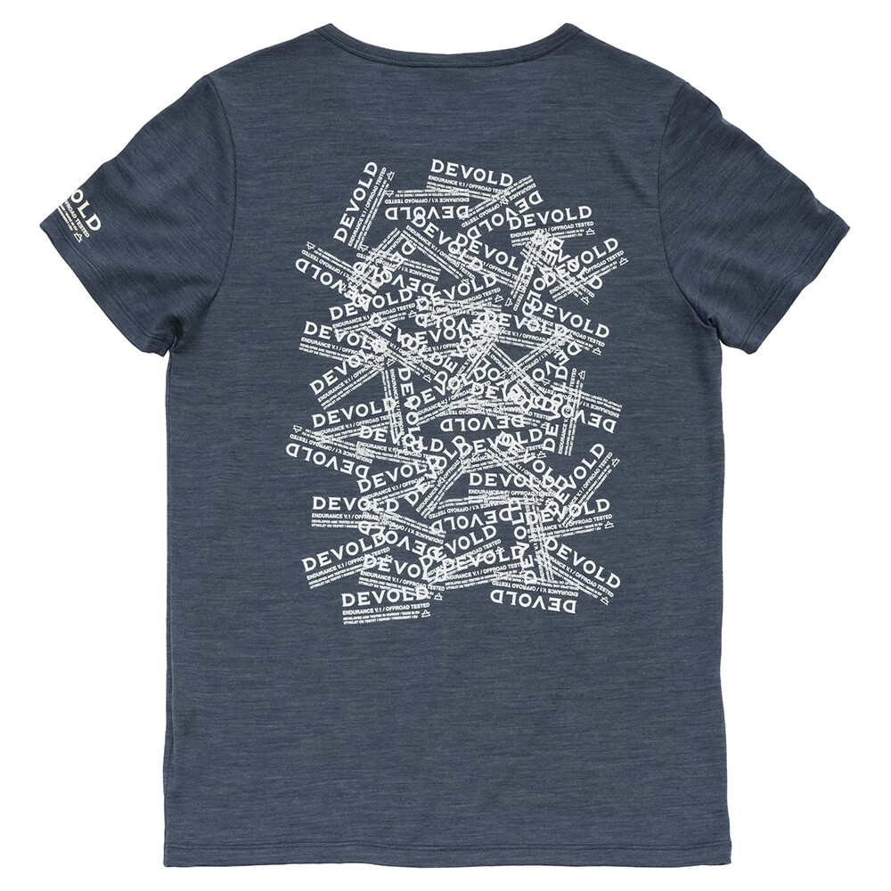 Tricou de agrement pentru femei Active Stamp Tee de la compania norvegiană Devold, cu imprimeu pe spate. Tricoul combină materiale naturale pentru a asigura cea mai bună performanță.