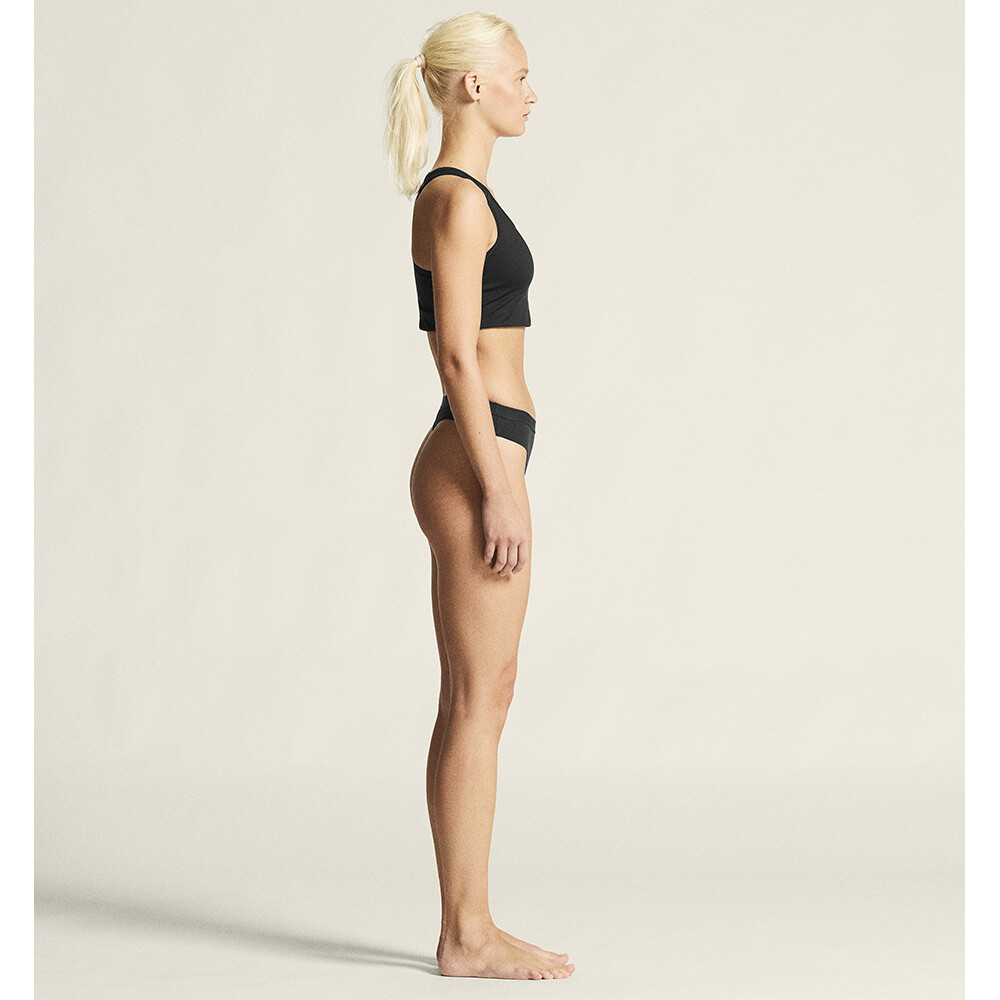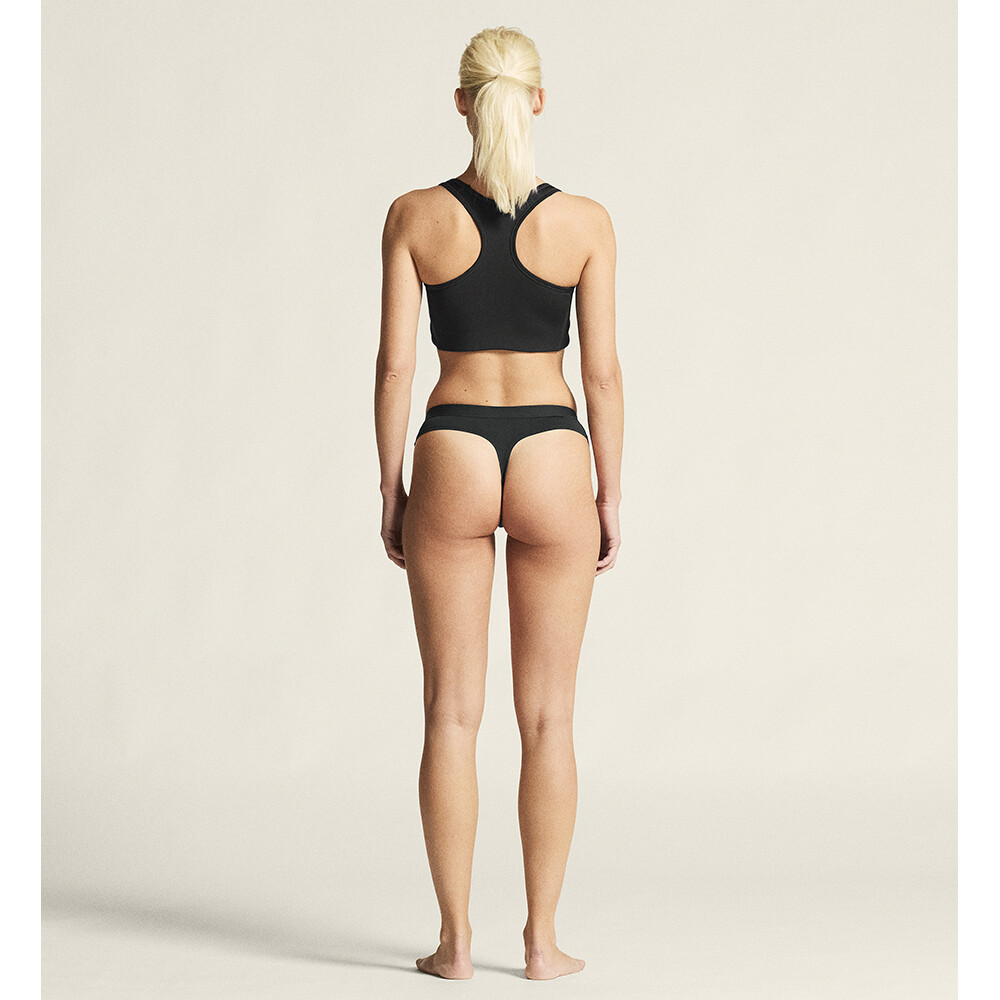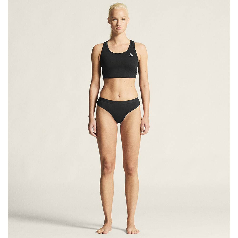 Chiloți sport pentru femei Active String de la compania suedeză Craft, realizați din material sintetic. Sunt ușori, flexibili, elimină excesul de umiditate către stratul următor și se usucă rapid.