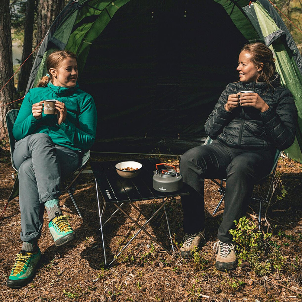 O masă de camping excelentă, pliabilă și ușoară, care păstrează totuși o stabilitate maximă. Lungime extinsă a mesei, ideală în combinație cu scaunele Helinox Sunset.