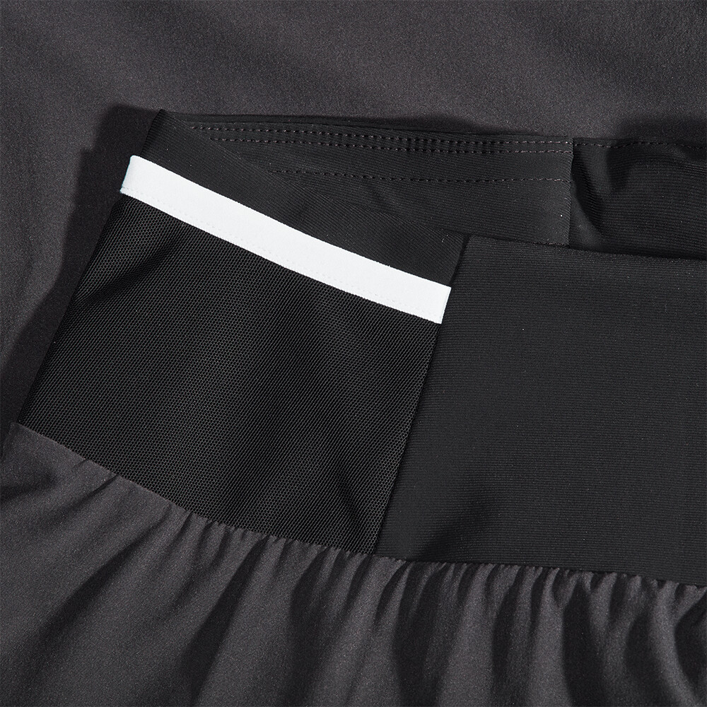 Pantalonii scurți sunt confecționați din material ușor respirabil. Pantalonii scurți respirabili interiori asigură un confort perfect. Talia elastică cu cordon se ajustează perfect. Buzunarul cu fermoar de la talie stochează convenabil cheile, iar buzunarele din plasă de la talie pot găzdui geluri sau o bară energizantă. Există un buzunar practic pentru telefon pe pantalonii scurți interiori. Detaliile reflectorizante vă vor spori siguranța în condiții de vizibilitate redusă.