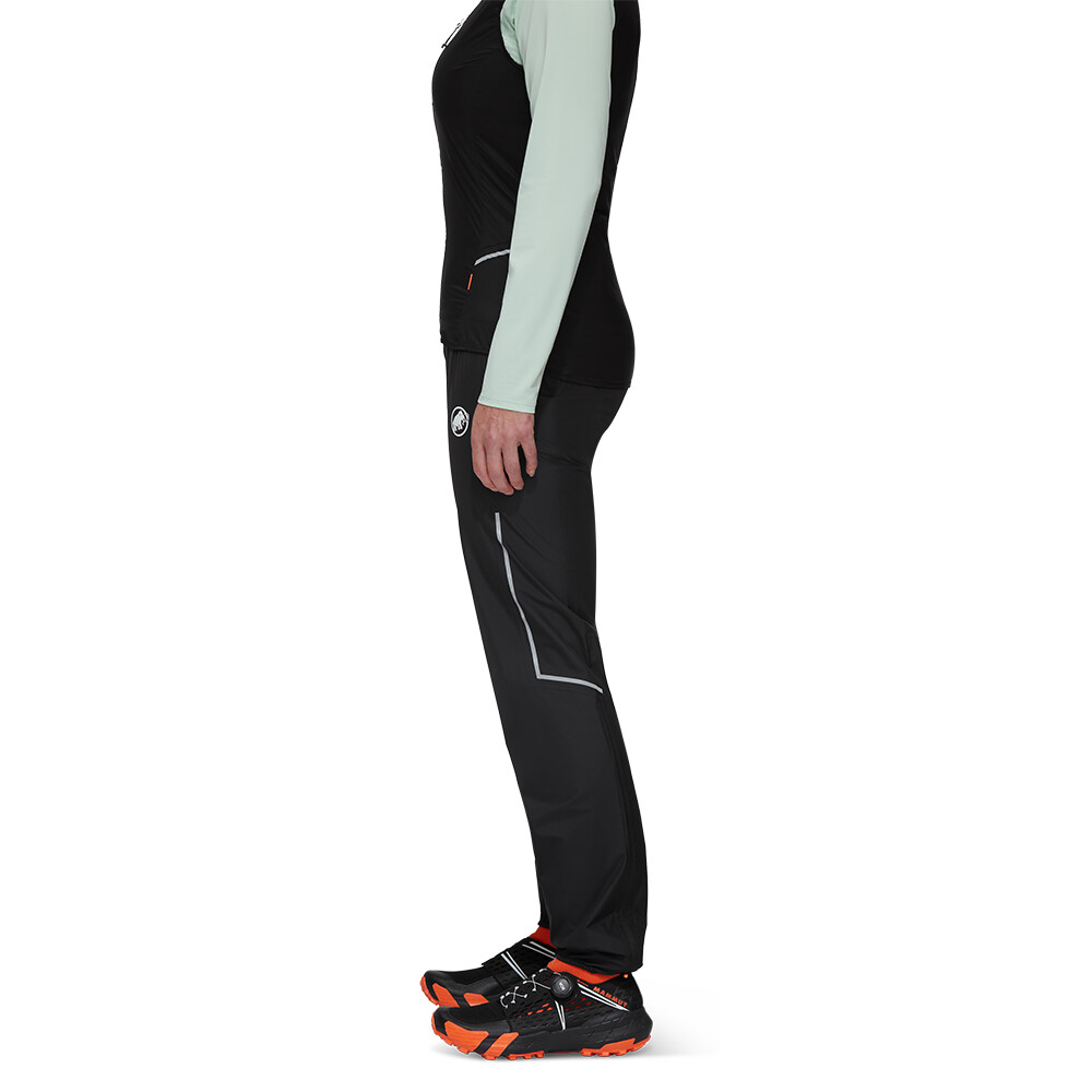 Pantalonii tehnici pentru femei de la Mammut sunt concepuți pentru toate schiorii de coborâre. Pantalonii sunt impermeabili, rezistenți la vânt și respirabili. Croiala sportivă pentru femei oferă o talie mai înaltă, bretele, ventilație cu fermoar, picioare reglabile întărite și o mulțime de buzunare.