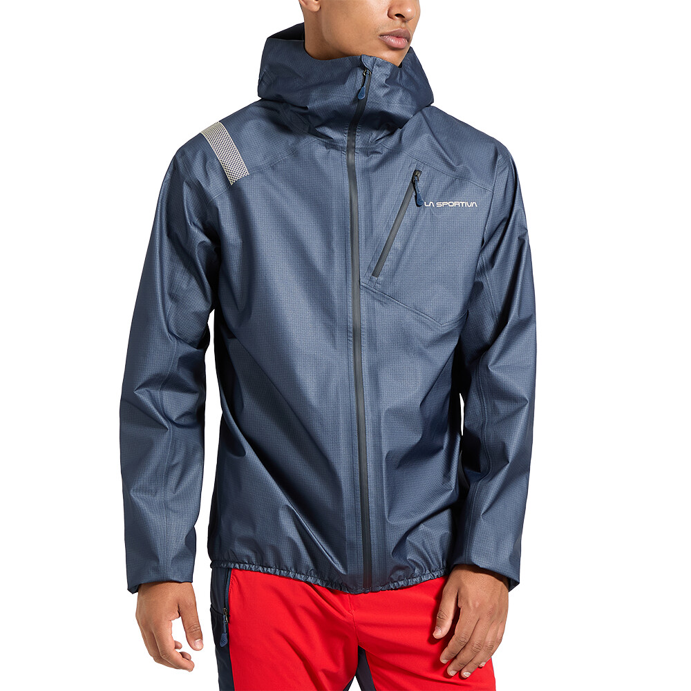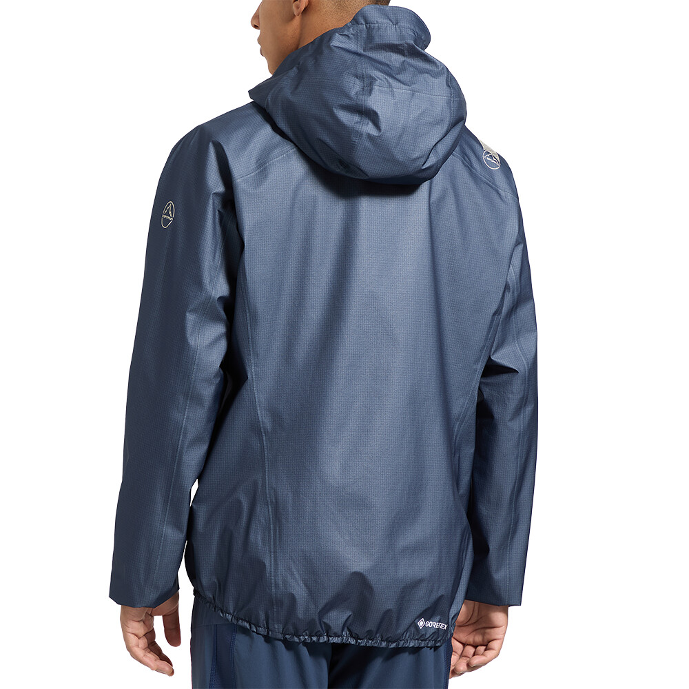 Jacheta AEQUILIBRIUM LITE GTX pentru bărbați de la La Sportiva oferă protecție pe vreme nefavorabilă.