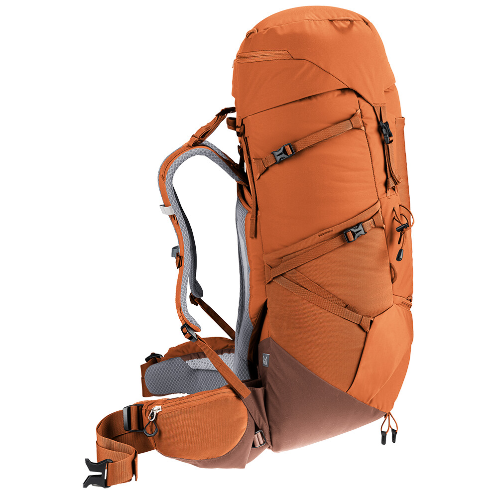 Cel mai ușor mod de a transporta încărcături grele este atunci când rucsacul și suportul devin unul singur. Și aici se află confortul excepțional al gamei Aircontact Core. Cu sistemul de spate Aircontact, sistemul de contact cu corpul aduce greutatea aproape de corp, aproape de centrul de greutate. Centura de talie ergonomică mobilă, care vă îmbrățișează perfect șoldurile, stabilizează rucsacul. Rezultatul este controlul deplin asupra conținutului ambalat și transferul eficient al încărcăturii. Ventilația perfectă este ajutată de plasa Air Spacer și de un canal mare de ventilație amplasat între pernele speciale din spumă cu camere goale, despre care testele arată că transpiri cu 15% mai puțin decât cu un sistem de spate compact standard. În combinație cu curelele de umăr ActiveFit ergonomice și cu cureaua de piept reglabilă, factual Aircontact Core 45 10 SL va deveni partenerul dvs. de călătorie de încredere.