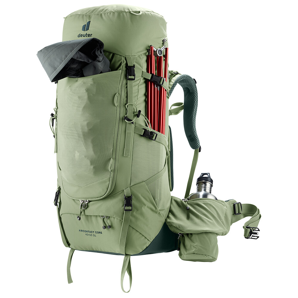 Rucsacul pentru drumeții și călătorii de mai multe zile Aircontact Core de la deuter are o mulțime de caracteristici pe care le veți aprecia în munți și oriunde altundeva mergeți să explorați. Are un sistem de spate VariClick reglabil pe înălțime, o umplere superioară completă cu un fermoar mare în față și posibilitatea de a atașa bețe, o plasă pentru cască, o rulotă și alte echipamente din afara rucsacului. De asemenea, veți beneficia cu siguranță de o pelerină de ploaie, un buzunar pentru pachetul de hidratare, un buzunar detașabil pentru sticle pe centura de talie sau poate o buclă pe cureaua de umăr pentru ochelari de soare.
