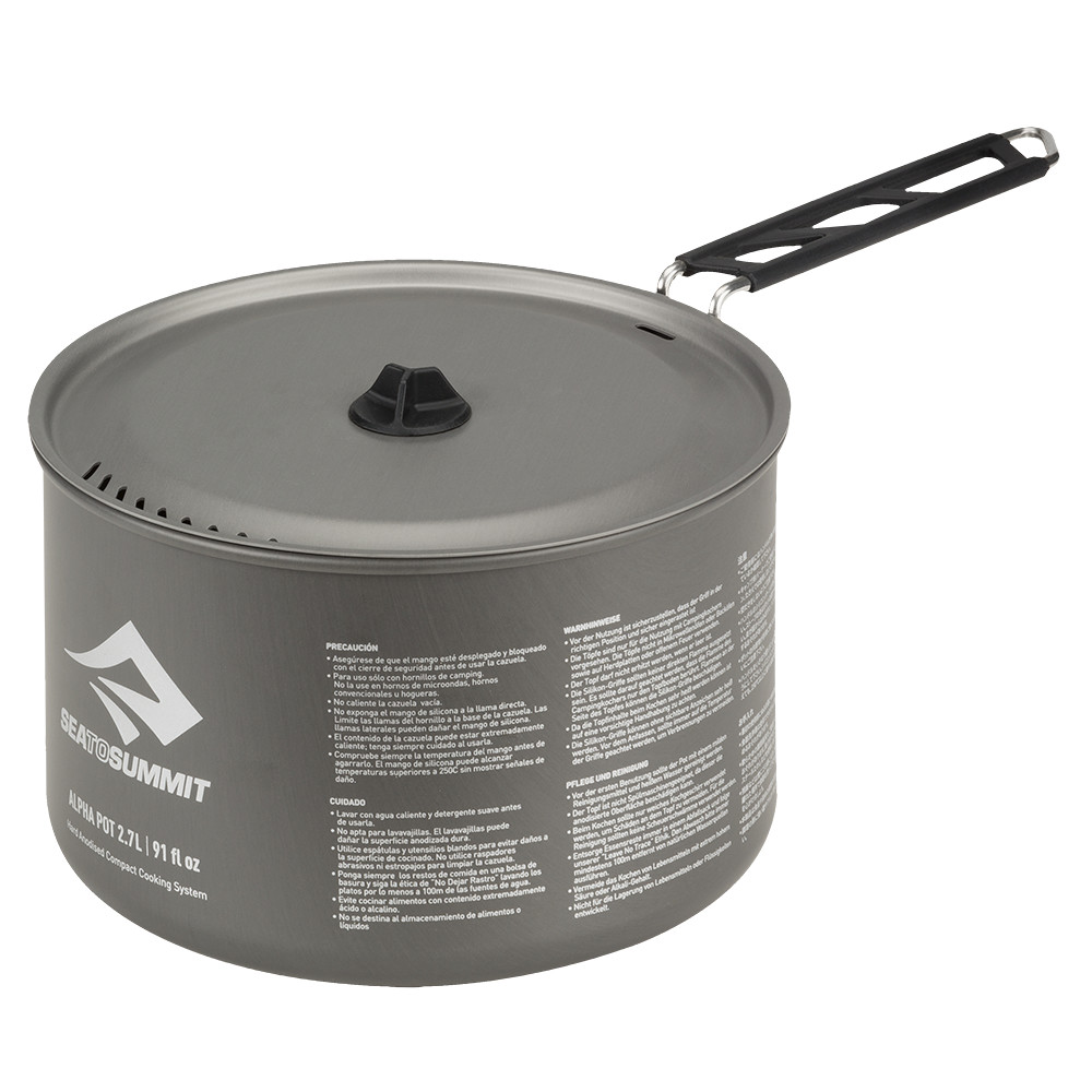 Oală cu capac cu mâner rabatabil marca Sea To Summit. Este fabricat din aliaj de aluminiu extrem de ușor, cu un finisaj anodizat. Datorită acestuia, alimentele nu se ard în timpul gătitului, iar oala este ușor de curățat chiar și cu o cantitate mică de apă. Capacul este prevăzut cu o strecurătoare pentru vărsarea convenabilă a excesului de apă. În plus, îl puteți "agăța" pe marginea oalei în timpul gătitului (pentru a preveni murdărirea acesteia). Mânerul poate fi fixat ferm în timpul manipulării pentru a preveni înclinarea accidentală. După ambalare, se fixează capacul și întreaga oală va ocupa un spațiu minim în rucsac.