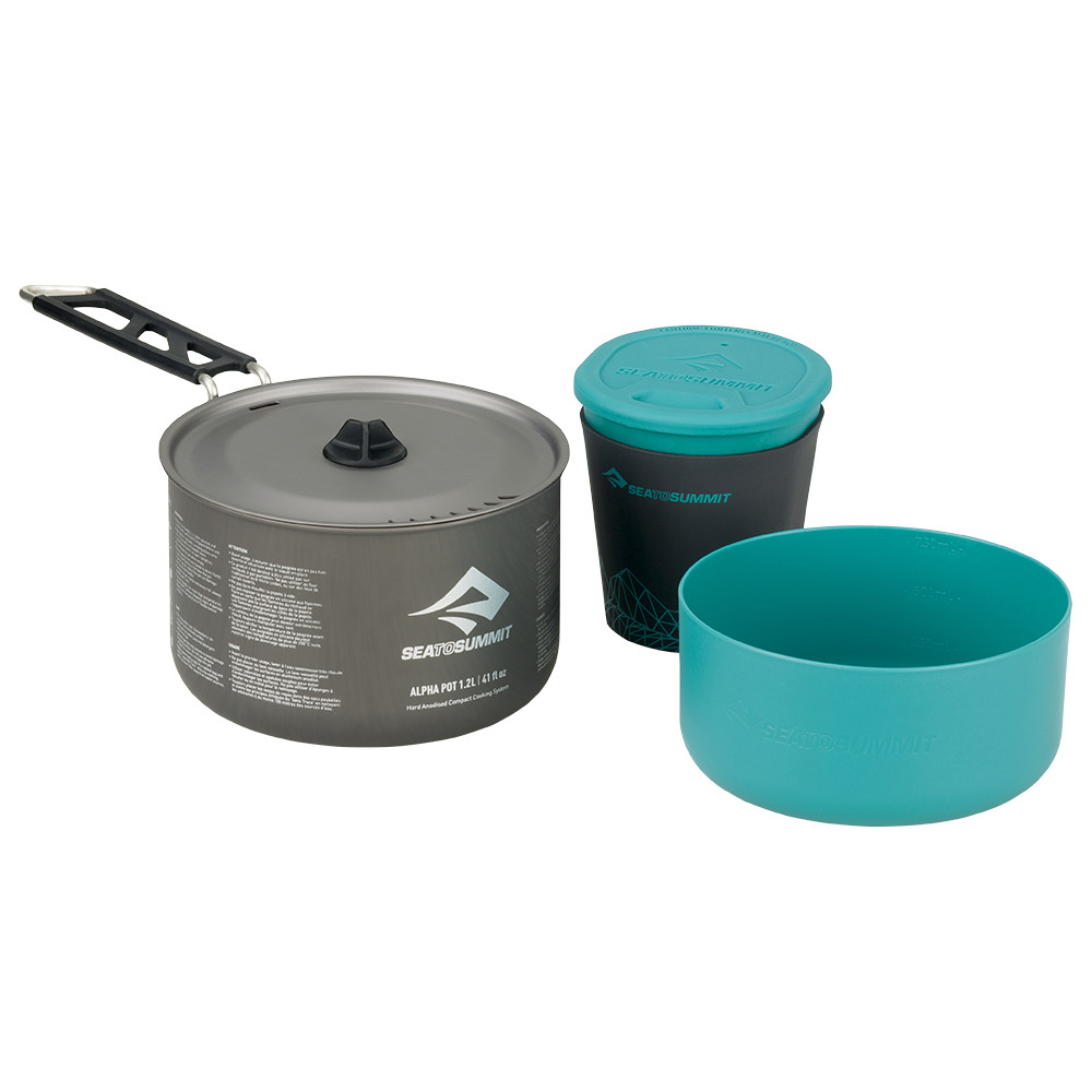 Cu setul de ustensile de gătit Sea To Summit, puteți găti și servi mâncare în mod convenabil oriunde în călătoriile dvs. Setul include o oală de 1,2 căni cu capac, un bol din seria de vase de gătit Delta și o cană de 350 ml cu manșon izolat detașabil și capac din silicon. Împachetați totul compact în interiorul oalei și folosiți mânerul articulat pentru a fixa capacul. Întregul set încape ușor în rucsac, iar greutatea foarte redusă îl face ideal pentru gătit într-o drumeție de mai multe zile pe munte, în timpul mersului cu bicicleta sau pentru vâslași.