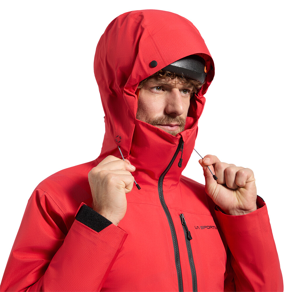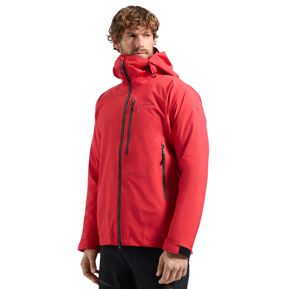 Jacheta ușoară cu membrană pentru bărbați de la La Sportiva vă va proteja în condiții meteorologice nefavorabile. Umerii preformați oferă libertate de mișcare.