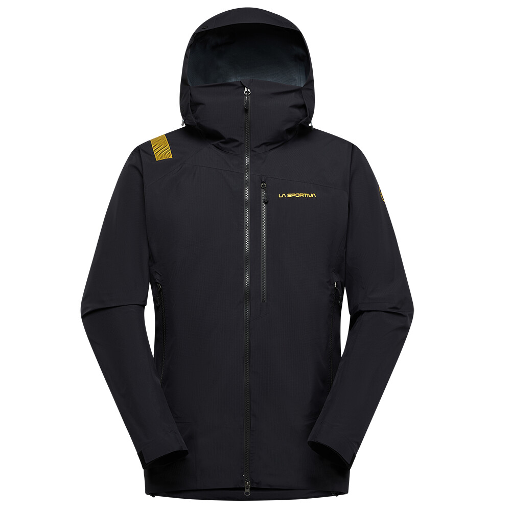 Jacheta ușoară cu membrană pentru bărbați de la La Sportiva vă va proteja în condiții meteorologice nefavorabile. Umerii preformați oferă libertate de mișcare.
