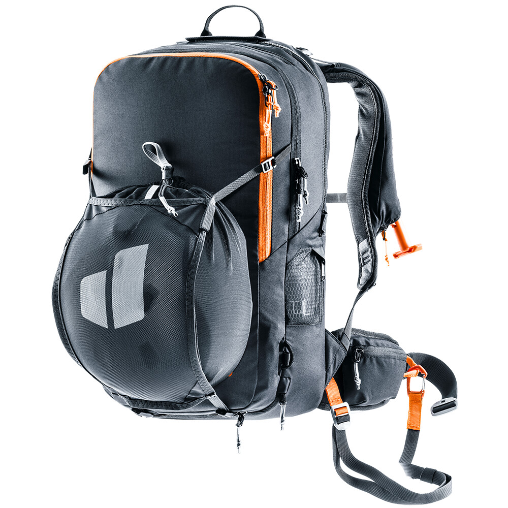 Rucsac de avalanșă cu airbag. Este ușor și are un sistem de spate confortabil din spumă EVA termoformată. Posibilitatea de a atașa schiuri, snowboard, cască, piolet și alte echipamente. Elemente portocalii pentru o vizibilitate mai bună.