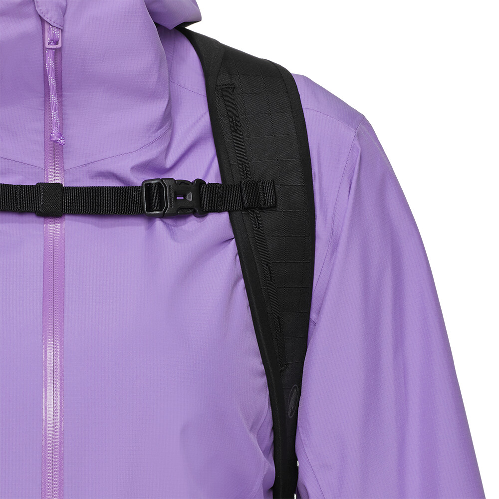 Rucsacul Alto 18 de la Mammut pentru uz zilnic, inspirat de rucsacurile Mammut pentru drumeții. Este fabricat din țesătură ripstop durabilă care vă protejează echipamentul de ploaia minoră. Are un buzunar principal cu fermoar, un buzunar lateral pentru sticle și un buzunar detașabil din plasă în față pentru a vă depozita jacheta, casca de bicicletă și alte echipamente atunci când este necesar. Rucsacul are atât o centură de piept, cât și una de talie și este o opțiune confortabilă pentru cei cărora le place să pedaleze prin oraș.