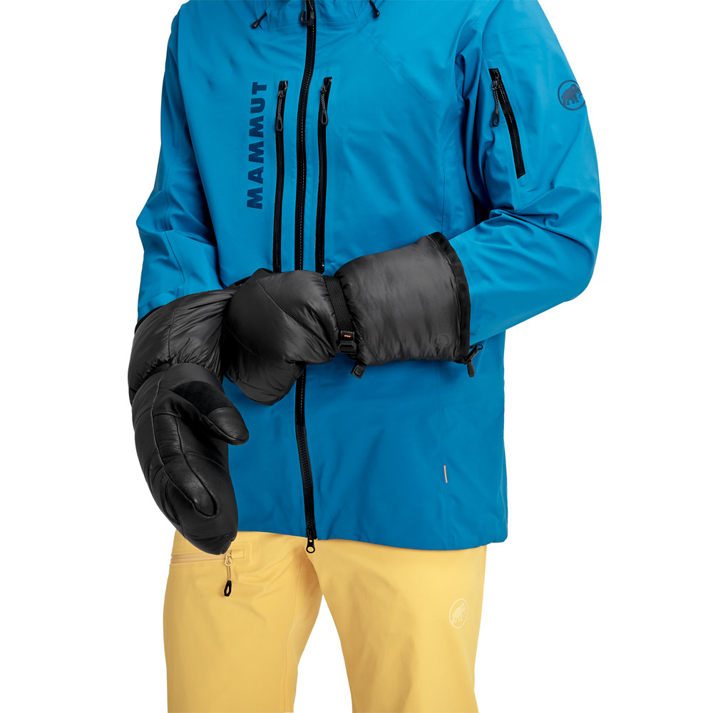 Ți se degeră degetele? Mănușile Mammut extra-izolate nu vor lăsa să se întâmple asta. Îți vor ține de cald atunci când escaladezi câmpii abrupte și cucerești vârfuri extreme. Materialul durabil Pertex® Quantum de pe partea superioară ține vântul și zăpada departe de mâini și le menține uscate pe tot parcursul zilei. Forma ergonomică cu palma din piele permite o prindere perfectă a bețelor sau pioletului.