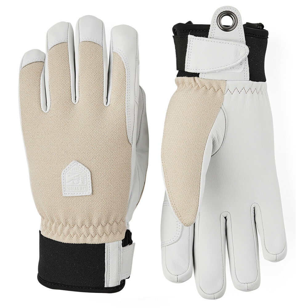 Mănuși pentru femei Fall Line de la Hestra din colecția Alpine Pro. Materialul superior este fabricat din piele de vită impregnată. Sunt izolate cu G-Loft sintetic și au o căptușeală detașabilă din fleece.