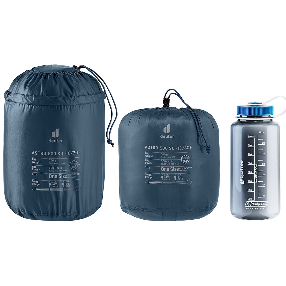 Astro SQ de la deuter este un sac de dormit ușor și cald, potrivit pentru utilizare din primăvară până în toamnă. Datorită greutății sale ușoare și bunei pliabilități, este potrivit în special pentru excursii de mai multe zile cu rucsacul. Construcția internă cu cameră trapezoidală asigură că puful rămâne într-un singur loc, nu se prăbușește și astfel nu creează puncte "reci" în timpul dormitului. Materialul său exterior este rezistent la vânt și la rupere și este un produs certificat Bluesign®. Modelul SQ are formă dreptunghiulară, este complet închis cu fermoar și puteți dormi sub el ca sub o pătură convențională. În plus, are un buzunar pentru pernă care poate fi detașat și spălat separat.