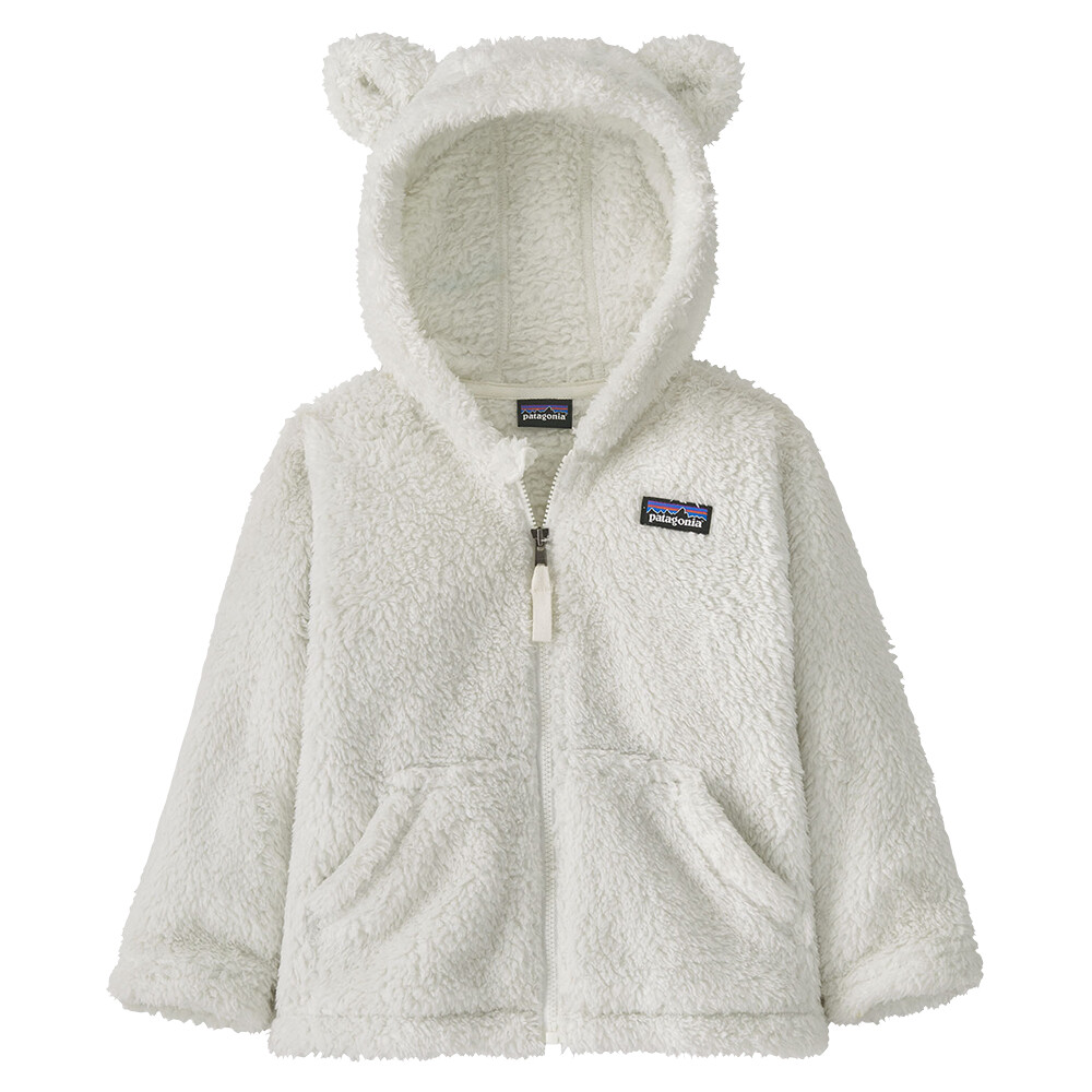 Hanoracul Baby Furry Friends Hoody de la Patagonia este un material cald și moale, 100% reciclat. Gluga este completată cu urechiușele drăguțe.