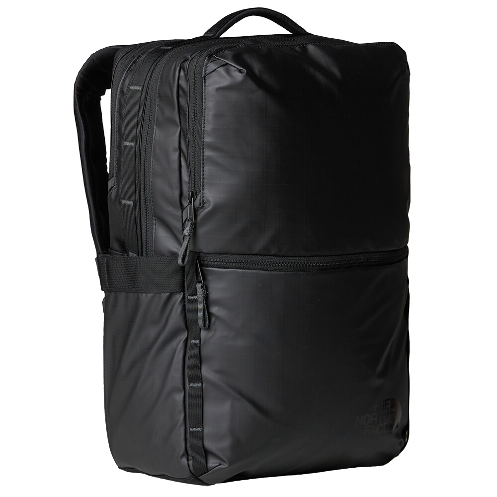 Un rucsac practic de la The North Face, ideal pentru deplasările zilnice sau călătorii. Este fabricat din material rezistent la apă, la fel ca gențile de călătorie Base Camp Voyager. Rucsacul are un buzunar căptușit pentru un laptop sau o tabletă de 16", un buzunar cu fermoar ușor accesibil cu organizator (pentru depozitarea telefonului mobil, pixului, blocnotesului, căștilor, încărcătorului etc.) și două buzunare laterale pentru o sticlă de apă, geacă sau umbrelă. Spatele din spumă cu pori deschiși vă asigură confortul pe tot parcursul zilei, iar cureaua de piept ajută la stabilitate atunci când transportați obiecte grele sau pedalați.