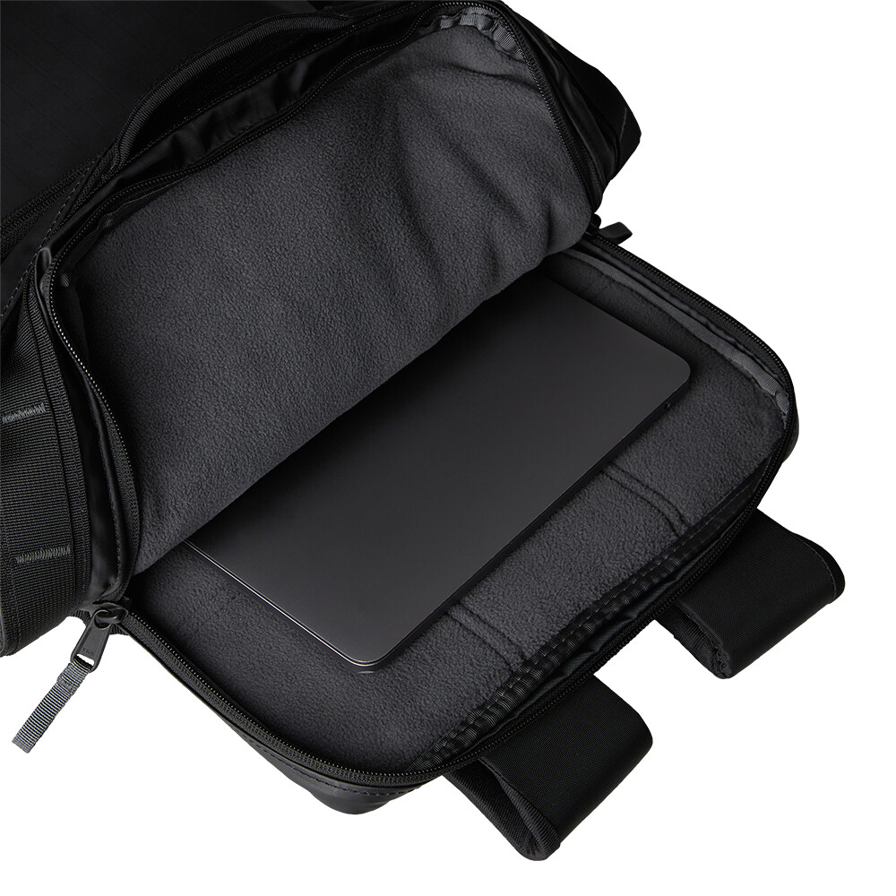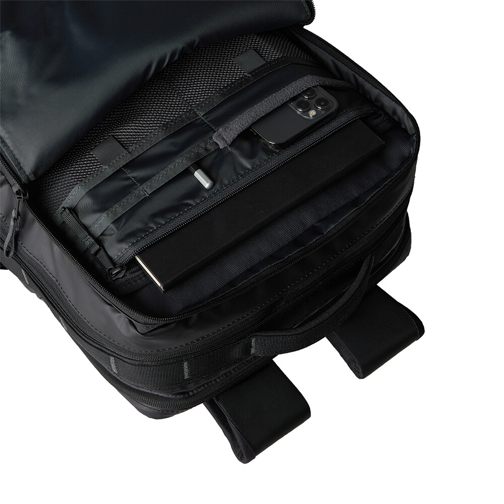 Un rucsac practic de la The North Face, ideal pentru deplasările zilnice sau călătorii. Este fabricat din material rezistent la apă, la fel ca gențile de călătorie Base Camp Voyager. Rucsacul are un buzunar căptușit pentru un laptop sau o tabletă de 16", un buzunar cu fermoar ușor accesibil cu organizator (pentru depozitarea telefonului mobil, pixului, blocnotesului, căștilor, încărcătorului etc.) și două buzunare laterale pentru o sticlă de apă, geacă sau umbrelă. Spatele din spumă cu pori deschiși vă asigură confortul pe tot parcursul zilei, iar cureaua de piept ajută la stabilitate atunci când transportați obiecte grele sau pedalați.