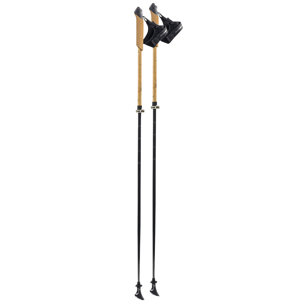Bețele ultraușoare de mers nordic Komperdell sunt fabricate din carbon, cu un finisaj unic din bambus natural. Sunt din două piese, cu o lungime reglabilă de la 105 la 125 cm. Au un mâner din plută moale, care este ușor și absoarbe bine transpirația. Acest lucru reduce riscul de bășici și bășici neplăcute pe mâini. Cizmele sunt fabricate din cauciuc vulcanizat, care asigură o aderență perfectă pe sol.