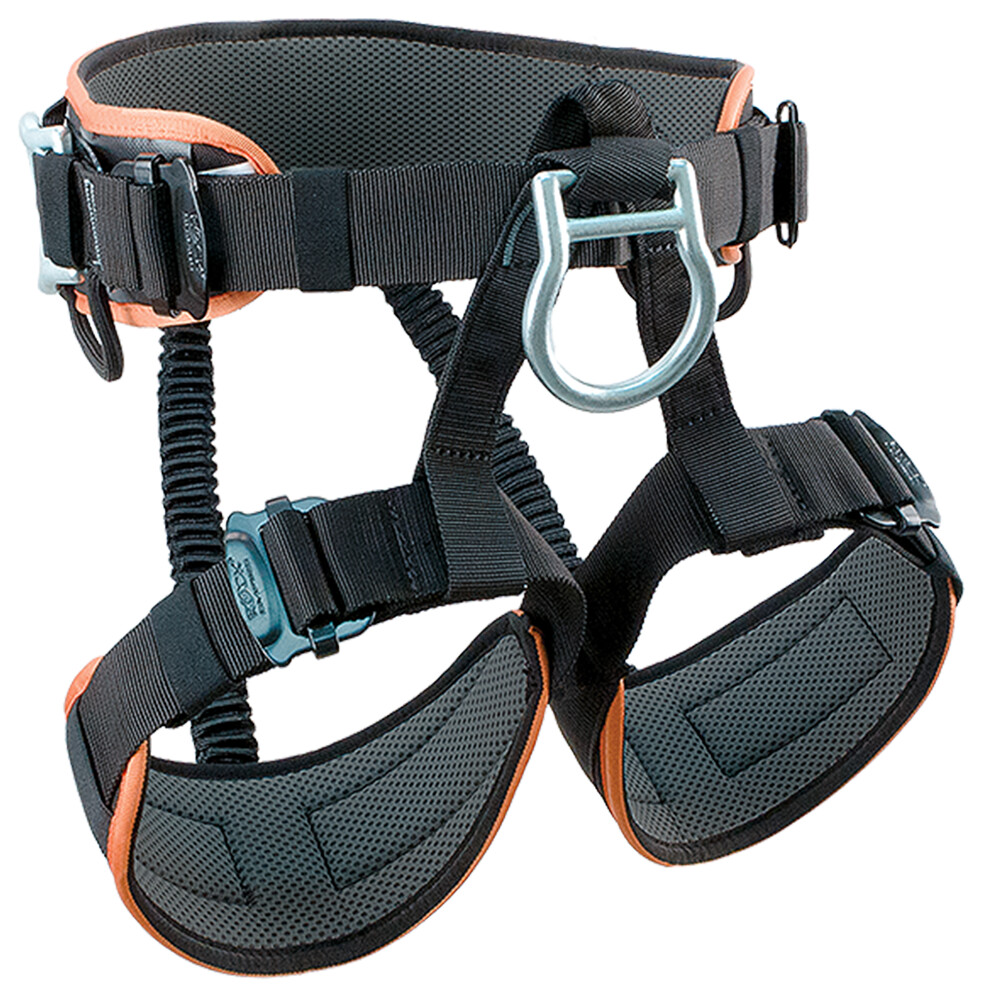 Scaun de lucru foarte confortabil cu un sistem revoluționar de reglare a mărimii. Datorită acestuia, este posibil să utilizați un scaun pentru toate dimensiunile. Poate fi combinat cu curele toracice pentru un ham complet.