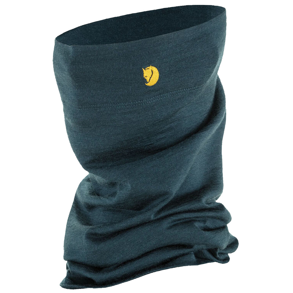 Încălzitorul de gât multifuncțional Fjällräven din poliester și lână merino este respirabil și cald chiar și atunci când este ud. Cusăturile plate nu presează și permit purtarea chiar și sub cască.
