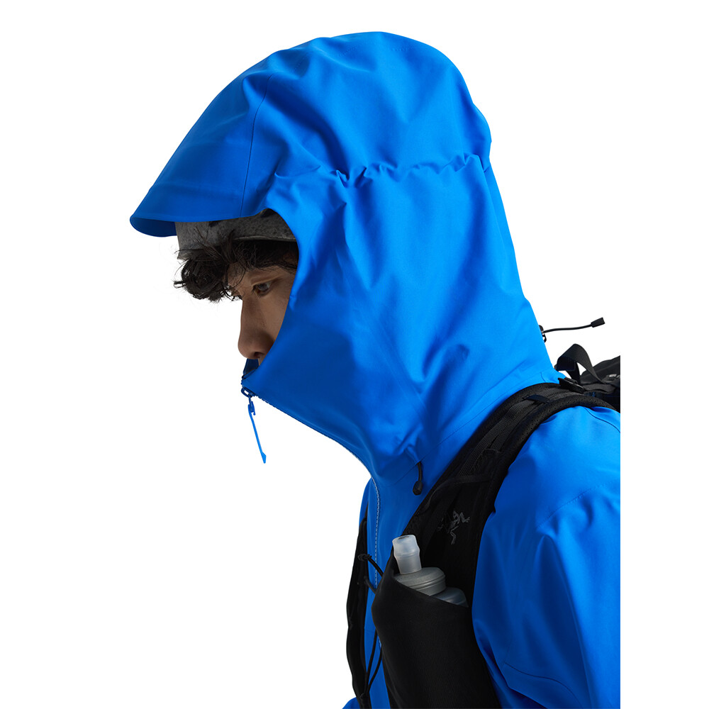 Gore-tex Pro este o membrană impermeabilă și respirabilă. Jacheta are ventilație cu fermoar în axile, pe care o veți aprecia în timpul mișcării active. Capota este compatibilă cu o cască de alpinism și are cordon de tragere în 4 puncte în față și în spate.