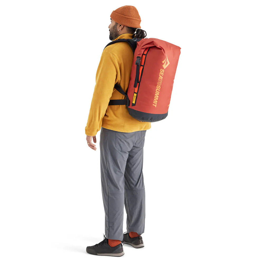 Rucsacul Big River de la Sea to Summit este alegerea perfectă pentru toate sporturile nautice, cum ar fi caiac, paddleboarding, rafting clasic și datorită materialului său durabil este potrivit și pentru canyoning sau speologie. Are un fund triplu care împiedică în mod eficient pătrunderea umezelii din partea de jos și un capac rulant neabsorbant. Curelele din spate sunt reglabile, inclusiv centura sternului și centura taliei. Există bucle de curea pe partea laterală a rucsacului pentru atașarea rucsacului la barcă.