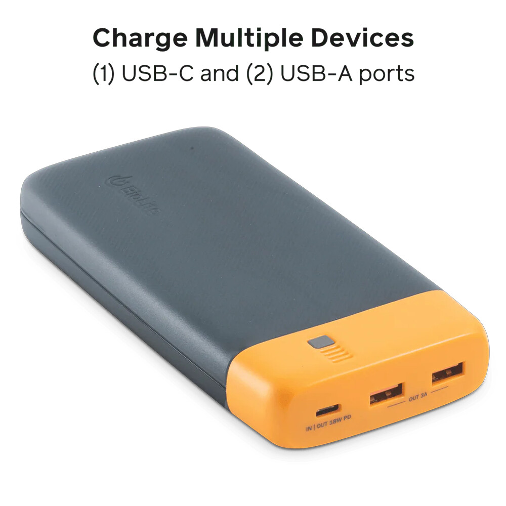 Încărcătorul Charge 80 PD de la BioLite este conceput pentru încărcarea rapidă a electronicelor mai mici, cum ar fi telefonul, căștile, lanterna frontală, ceasurile sport, dar datorită capacității sale mai mari poate încărca și o tabletă. Are o intrare USB C-PD (power delivery) pentru viteză maximă de încărcare și este echipat cu ieșiri USB A și USB C-PD.