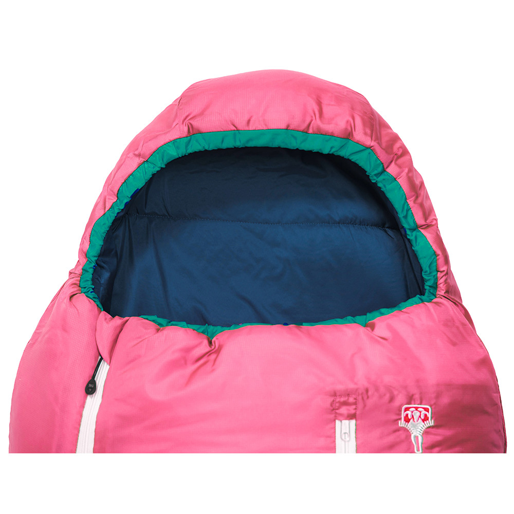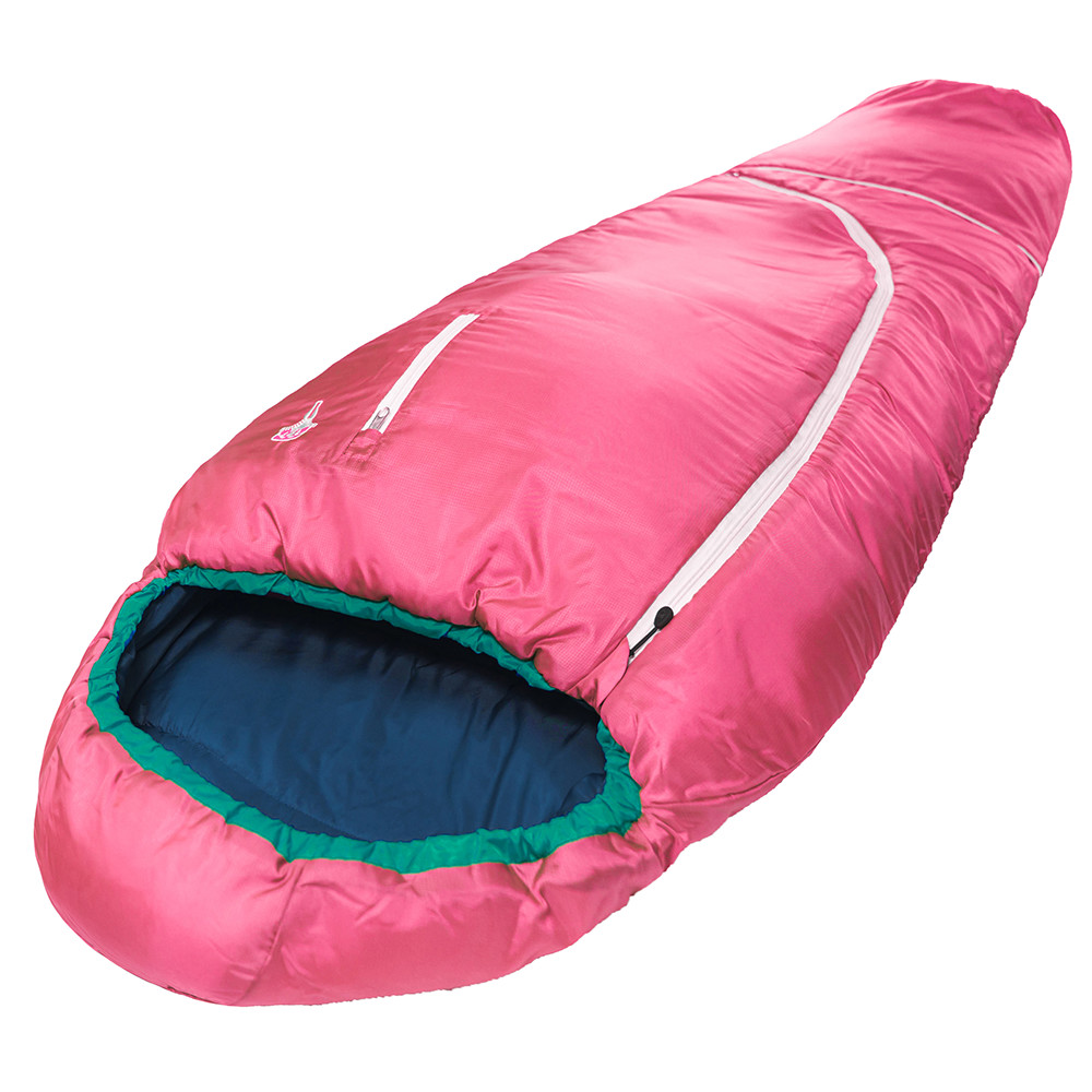 Sac de dormit pentru copii cu umplutură caldă din fibre goale. Dimensiunea de creștere este potrivită pentru înălțimea de 130-170 cm. Este complet cu fermoar, cu o glugă cu cordon. Ideal pentru tabere de vară, expediții de cercetași și camping.