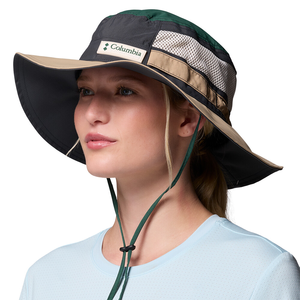 Pălăria ușoară din nailon de la Columbia este confortabilă de purtat, iar borul său oferă umbră și protecție UPF 50.