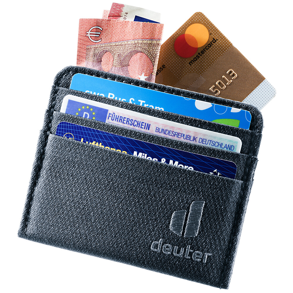 O completare practică la portofelul clasic, acesta este Portofelul pentru carduri de la deuter. Acesta are trei sloturi pentru carduri pe fiecare parte. Cu dimensiunea sa, se potrivește bine într-un buzunar de pantaloni, geantă de mână sau rinichi. Îl puteți folosi pentru călătorii și pentru uz zilnic. Cardurile sunt plasate clar și ușor accesibile.