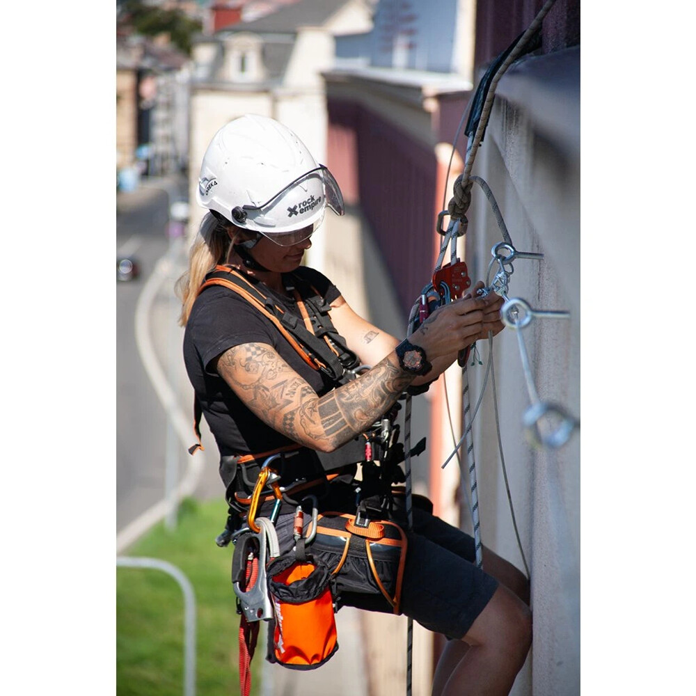 Catch Fix de la Rock Empire este utilizat pentru sistemele de frânghii pentru a poziționa în siguranță și convenabil frânghia la locul de muncă. Lungimile diferite ale cablului integrat asigură o variabilitate ridicată a utilizării. Dispozitivul de poziționare CATCH este fixat și fixat pe linia de cablu cu un șurub încastrat. Fără ajutorul uneltelor, dispozitivul CATCH nu poate fi îndepărtat de la șnur, asigurând astfel protecție împotriva plasării greșite.