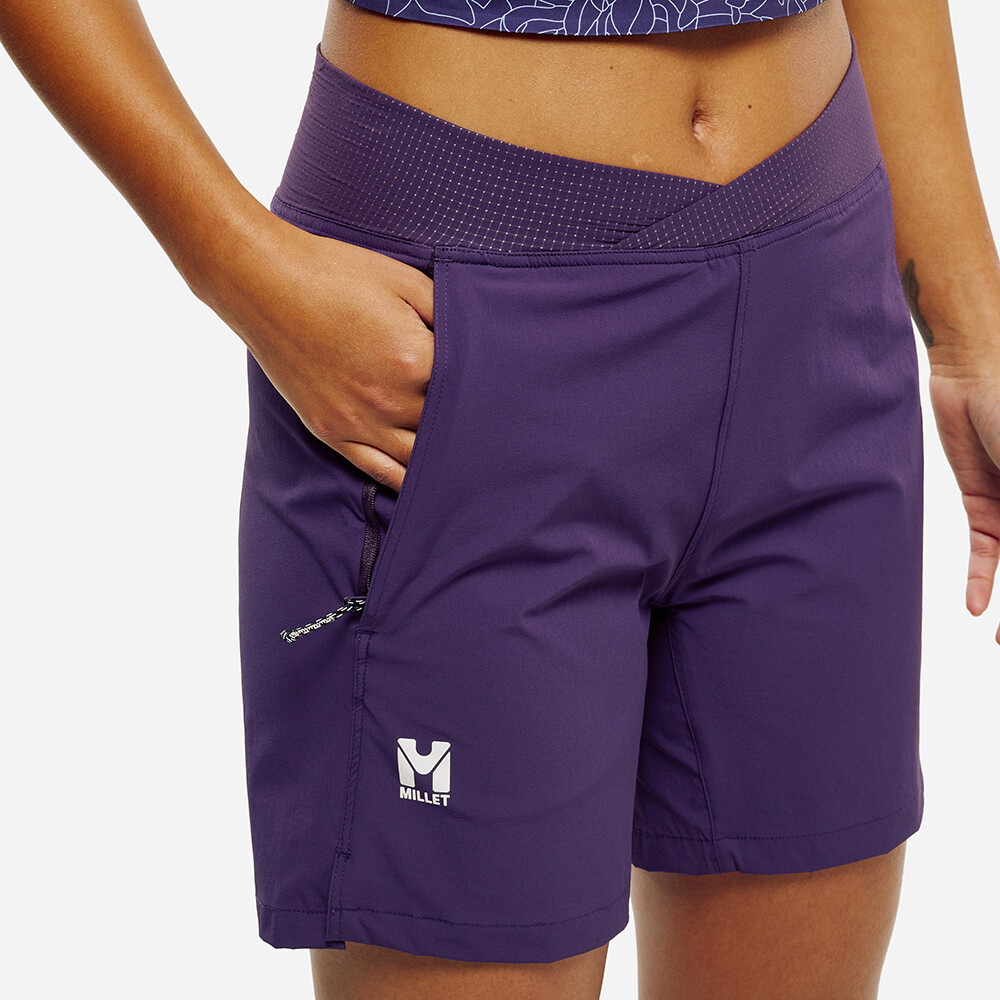 Pantalonii scurți funcționali pentru femei de la Millet sunt alegerea ideală pentru toate alergătoarele. Pantalonii scurți sunt bine ajustați, au material respirabil, se usucă rapid, au buzunare din plasă, un buzunar cu fermoar și un logo reflectorizant.