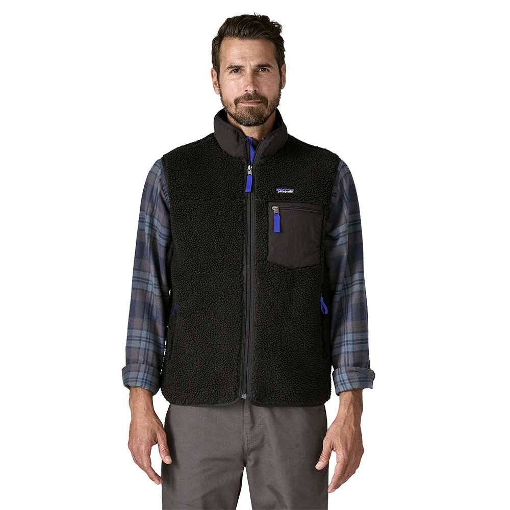 Vesta Classic Retro-X Men de la Patagonia combină designul dovedit cu un accent pe ecologie și funcționalitate. Vesta este fabricată din fleece cald. Stratul exterior este fabricat din material cald Repreve®, care este un sfert plastic reciclat provenit din zonele de coastă. Stratul exterior este căptușit cu tafta rezistentă la vânt. Cu un finisaj DWR fără PFAS și tiv întărit NetPlus®, vesta poate face față tuturor condițiilor meteorologice, zilelor reci și vântoase. Finisajul rezistent la vânt vă va spori confortul în zilele mai reci.