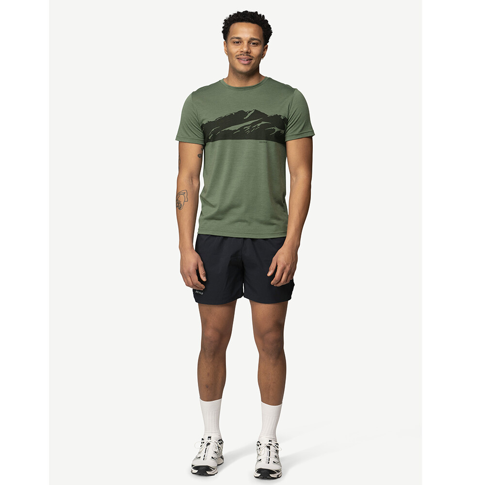 Tricou funcțional pentru bărbați Classic View Tee de la compania norvegiană Devold, cu grafică montană.