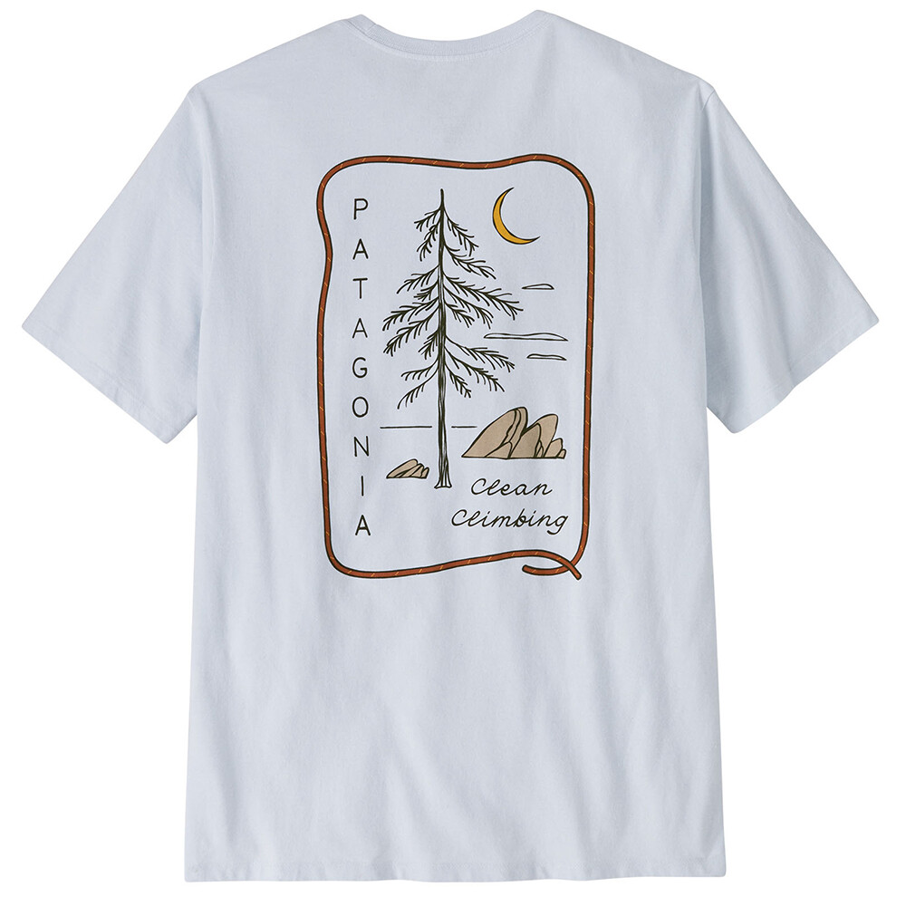 Tricoul pentru bărbați Clean Climb Roots Responsibili-Tee de la Patagonia poartă un mesaj care are rădăcini adânci - la propriu. Inspirat de mișcarea "Clean Climbing" din anii 1970, designul face referire la o abordare respectuoasă a naturii, promovând în același timp producția durabilă. Tricoul este fabricat din 50% bumbac reciclat și 50% poliester reciclat, ceea ce reduce semnificativ apa, energia și emisiile de CO2 în comparație cu fabricarea cu materiale noi.