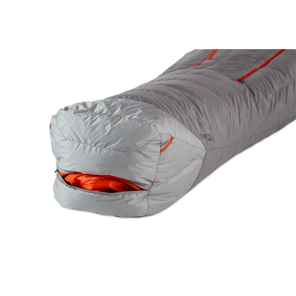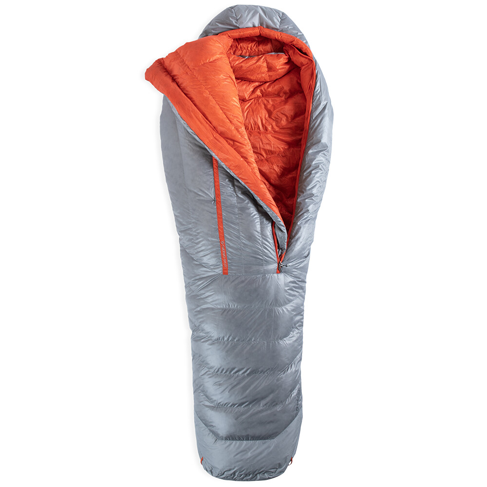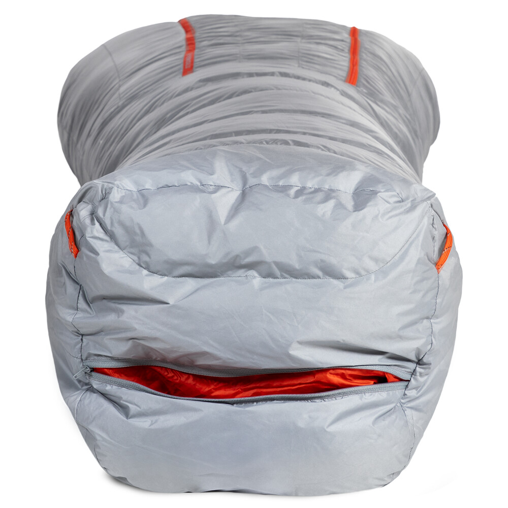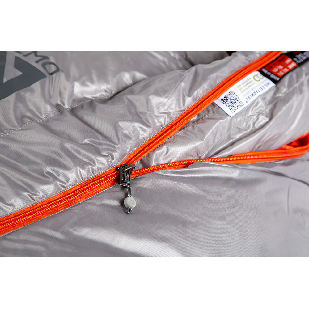 Sac de dormit din puf pentru utilizare în trei anotimpuri. Forma sa specială este adaptată la maxim pentru dormitul pe lateral. Are două găuri de ventilație cu fermoar și un guler exterior larg care poate fi întors spre interior pentru și mai multă căldură.