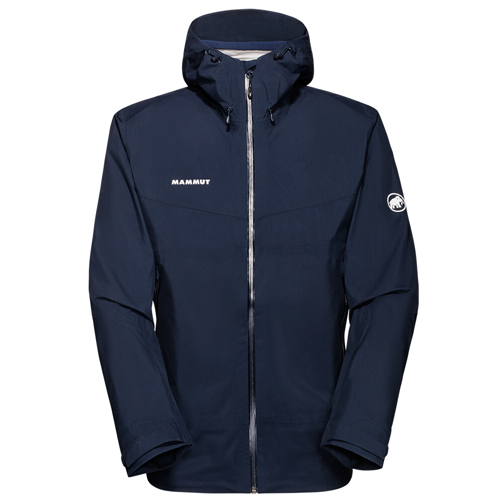 Jacheta cu glugă Convey Tour HS pentru bărbați de la compania elvețiană Mammut mulțumește prin greutatea sa redusă și rezistența ridicată la vânt și ploaie.