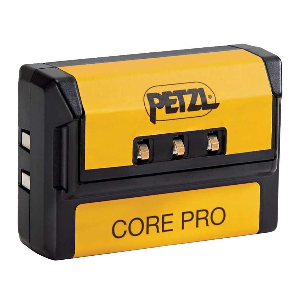 Acumulator reîncărcabil de mare capacitate 1250 mAh (3,6 V / 4,5 Wh) CORE PRO de la Petzl pentru lampa frontală PIXA R. Poate fi reîncărcată direct în lampă frontală sau în exterior folosind cele trei contacte de încărcare externe și cablul de încărcare. CORE PRO oferă o soluție economică ca sursă de alimentare principală sau de rezervă.