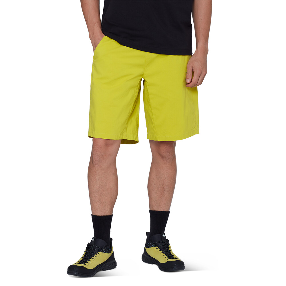 O croială lejeră sofisticată pentru alpinism cu un burduf de pas completează tricoul elastic din bumbac organic și elastan. Talia elastică este fixată rapid cu un cordon. Cele trei buzunare vor fi apreciate atât pe bolovan, cât și în oraș. Împerechează acești pantaloni scurți cu un tricou Mammut elegant, încalță-ți pantofii de alpinism și pornește să cucerești noi dificultăți!