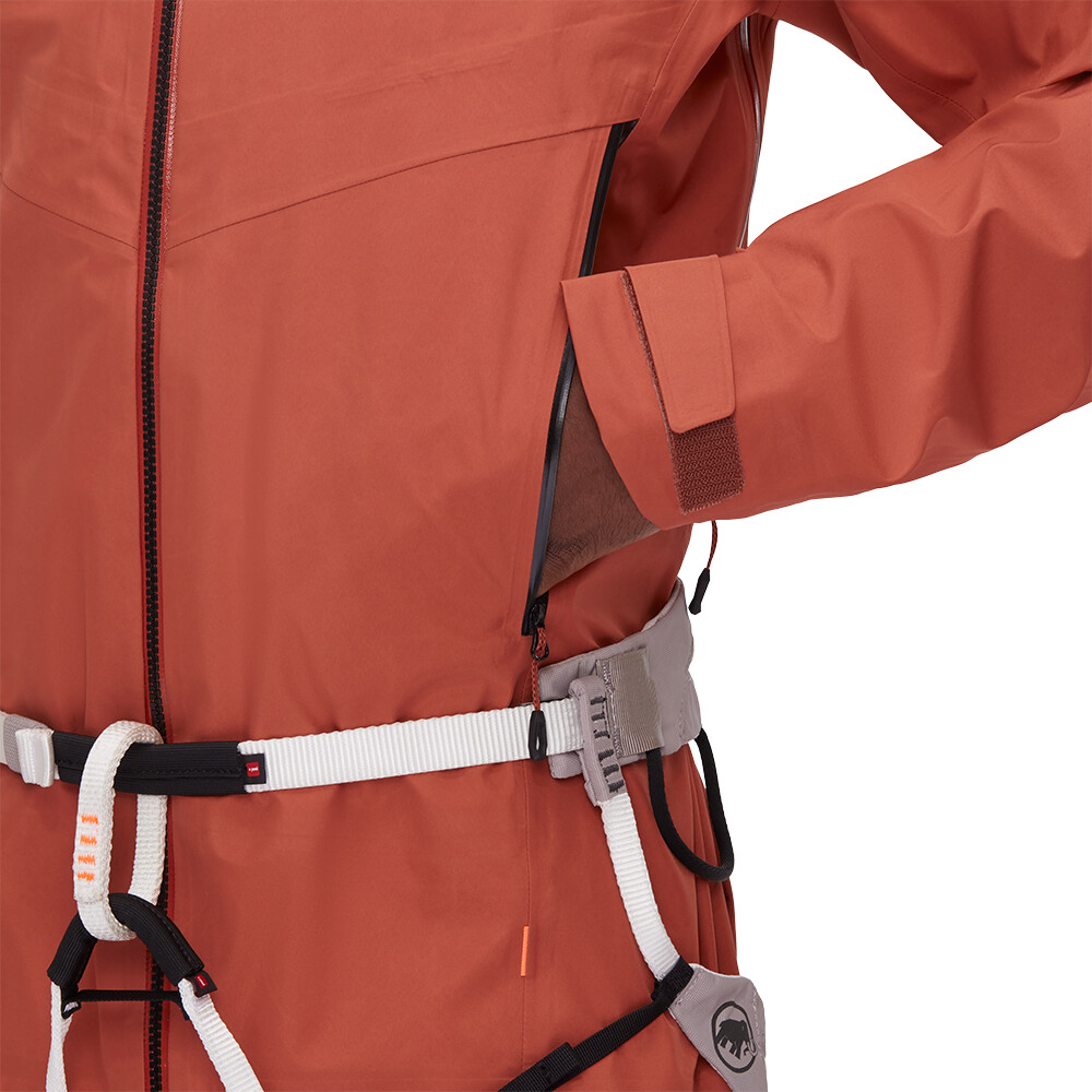 GORE-TEX® durabil în 3 straturi, care poate rezista la aproape orice și oferă protecție 100% în munți împotriva intemperiilor. Impermeabil, rezistent la vânt și respirabil. Croiala sofisticată cu Mammut High Reach Technology asigură că jacheta nu se va încreți în timpul activității. Detalii tehnice: glugă compatibilă cu casca, reglabilă pe orizontală și verticală, fermoar bidirecțional impermeabil, deschidere cu fermoar la axilă sau mâneci preformate pentru mișcarea liberă a brațelor la escaladă sau schi-alpinism.