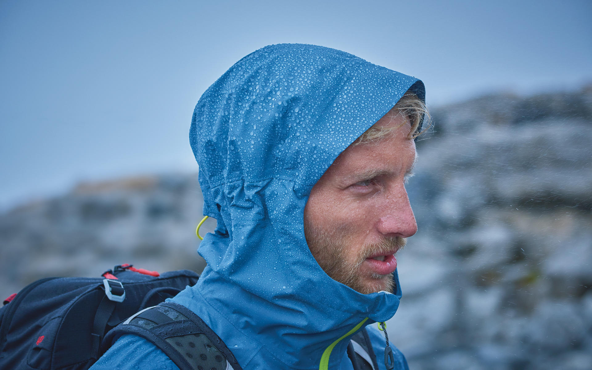 Pentru majoritatea hainelor noastre de exterior, valorile de peste 10.000 mm de coloană de apă au sens. 10m de apă este poate imposibil să se producă, ne-ar bate cu ciocanul în pământ, dar nu este vorba doar de precipitații, ci și de presiunea apei, care se produce foarte ușor. De exemplu. atunci când stăm jos, se aplică pe material echivalentul a 5.000 mm (aproape toată greutatea unei persoane pe suprafața de șezut), când îngenunchem 12.000 mm (acolo greutatea este repartizată în zona genunchilor) și nu în ultimul rând curelele unui rucsac, geantă, poșetă, unde greutatea este transferată doar pe curelele de susținere, unde presiunea poate ajunge atunci până la 18.000 mm. Aici intră în joc valorile ridicate de impermeabilitate revendicate pentru materialele individuale utilizate în echipamentele noastre de exterior.